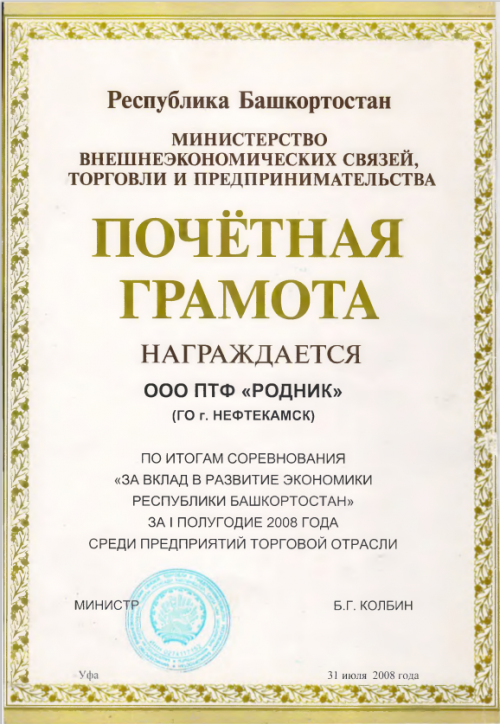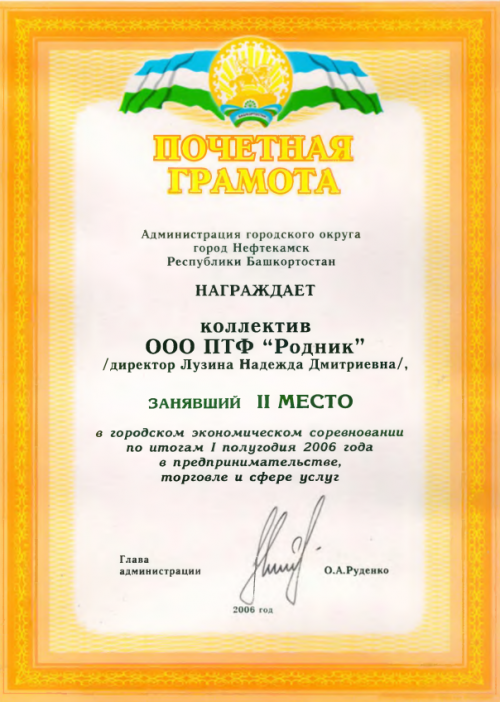 ООО Производственно-торговая фирма «Родник» (ООО ПТФ «Родник») занимается организацией торговли и общественного питания в городах Нефтекамск, Октябрьский, Краснокамском районе с 1959 года.